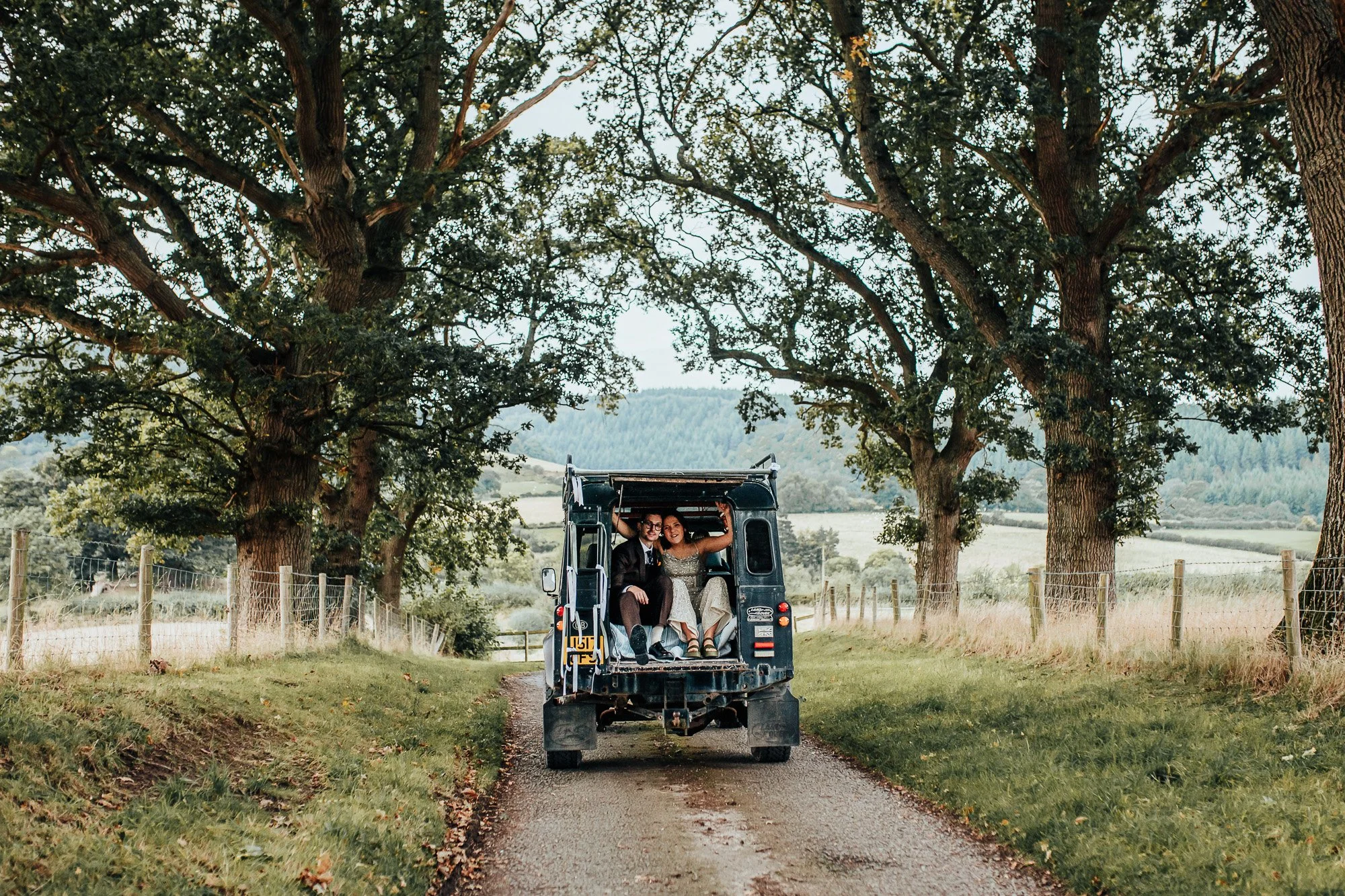 On Saturday 28th September Elen and Toby got married at the beautiful Wilde Lodge in Powys. It was an incredible day, with beautiful autumn sunshine, and stunning views as far as the eye could see. During the ceremony Toby and Elen exchanged beautiful vows that they wrote themselves, and for the couple’s photos we made the most of the beautiful grounds at Wilde Lodge to get some images of the happy couple. In the evening there was even an outfit change and a land rover ride, which was so much fun to photograph!